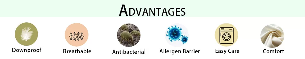 | Advantage | Down proof, Anti-wrinkle, Durability, Breathable, Waterproof, etc. |