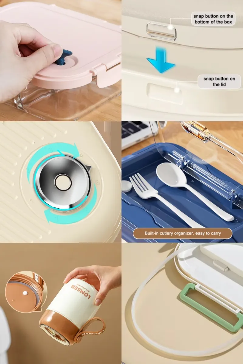Wholesale custom insulated lunch box supplier offering 304 stainless steel bento lunch boxes with 2-grid design, leak-proof seal, soup bowl with lid, insulated bag, and built-in cutlery box. OEM & ODM customization available for global buyers.